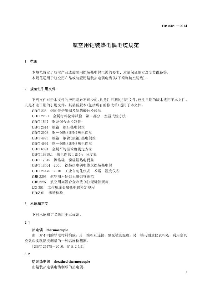 HB 8421-2014(2017) 航空用铠装热电偶电缆规范