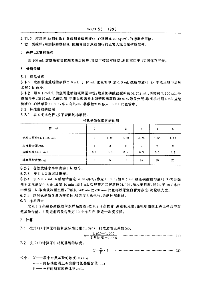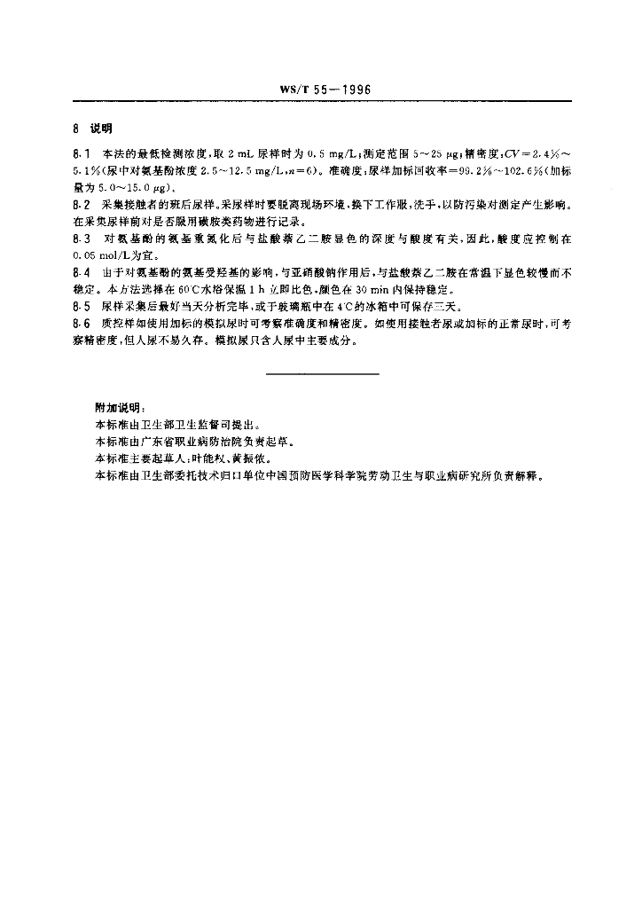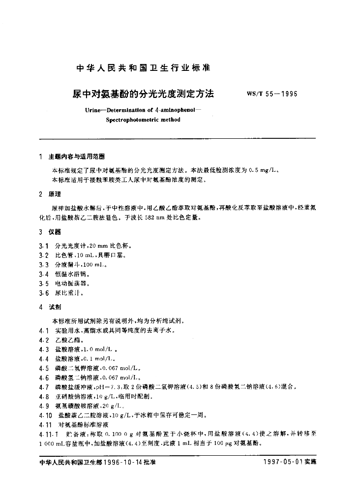 WS/T 55-1996 尿中对氨基酚的分光光度测定方法