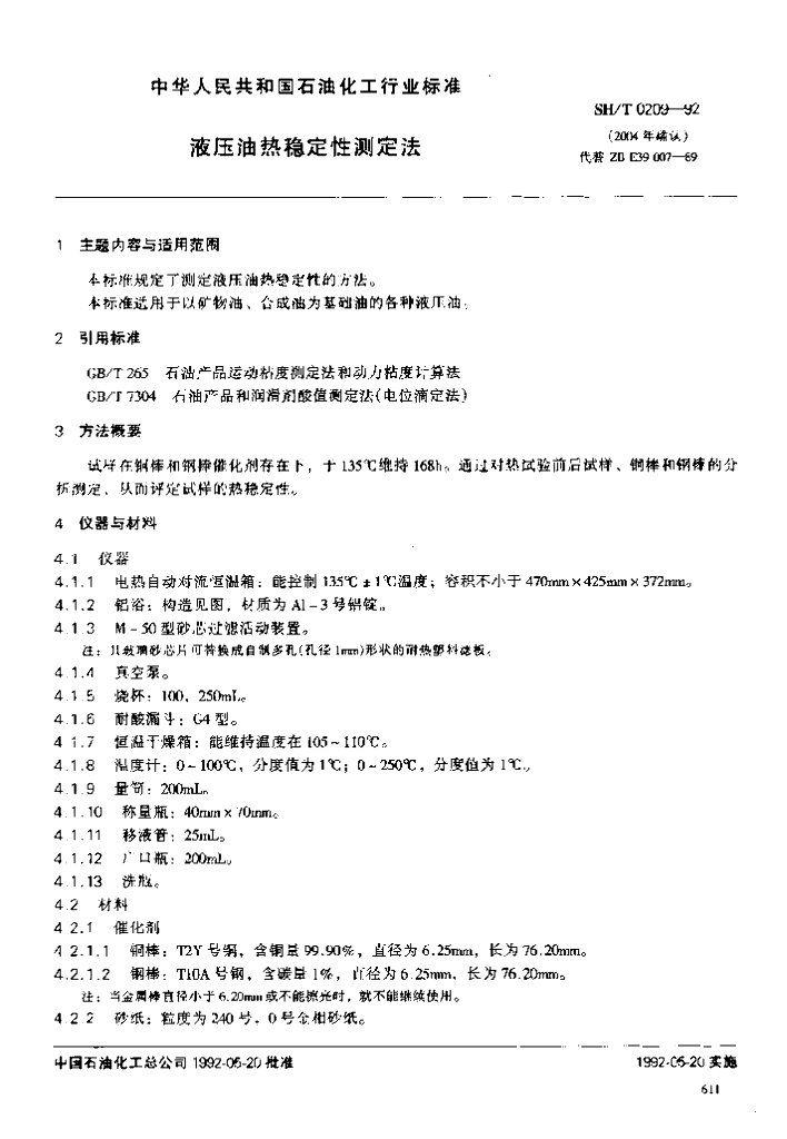 SH/T 0209-1992 液压油热稳定性测定法