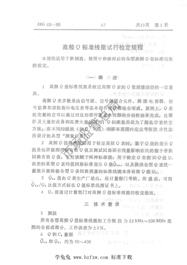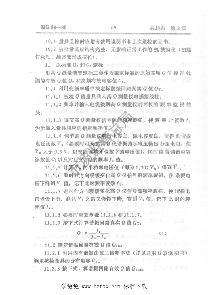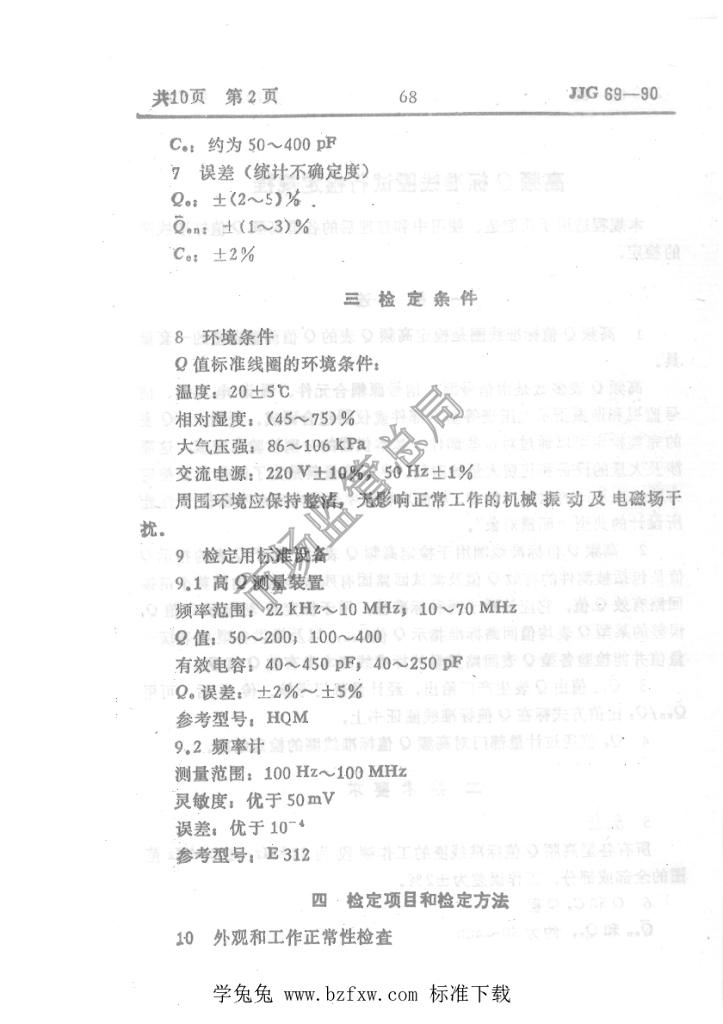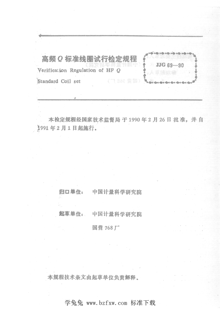 JJG 69-1990 高频Q标准线圈试行检定规程