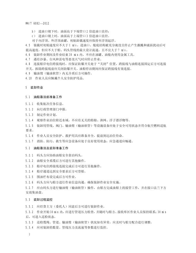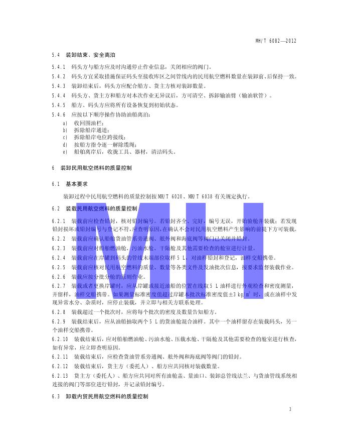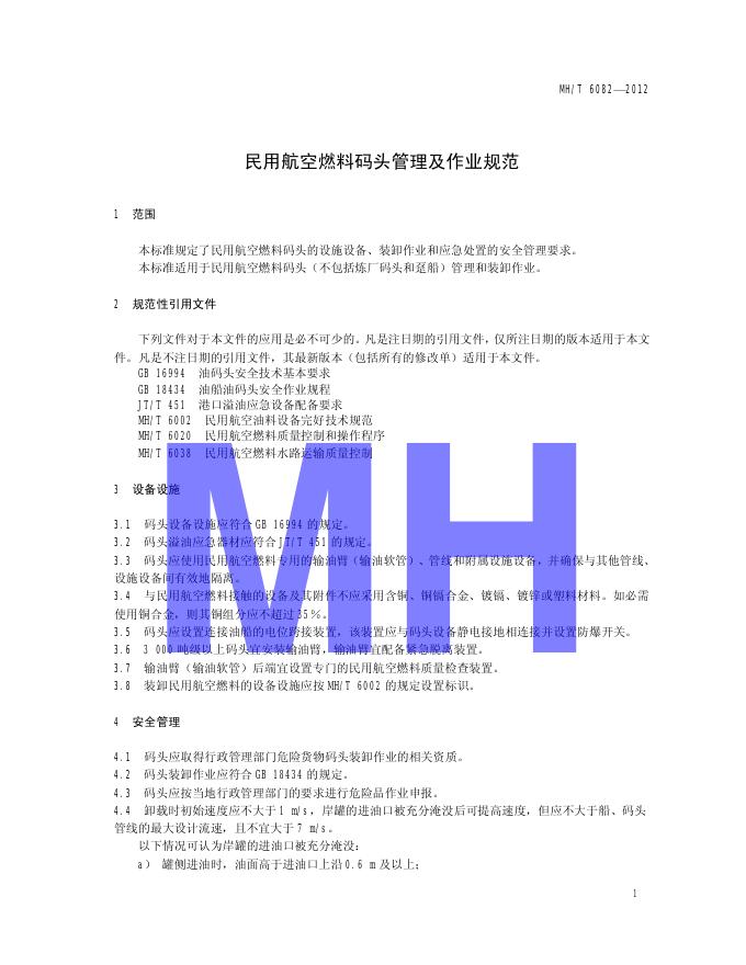 MH/T 6082-2012 民用航空燃料码头管理及作业规范