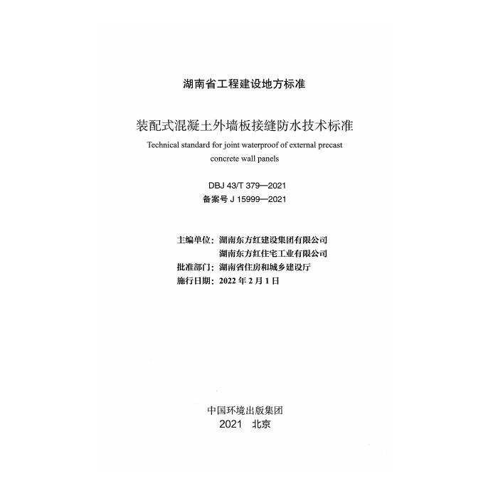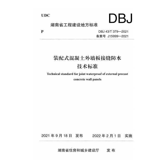 DBJ43/T 379-2021 装配式混凝土外墙板接缝防水技术标准