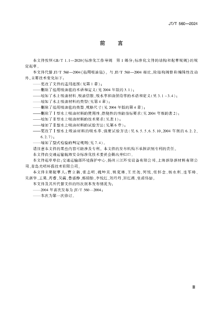 JT/T 560-2024 水上吸油材料