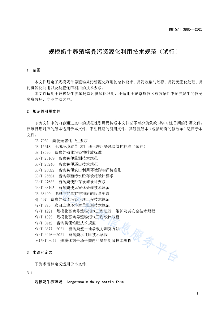 DB15/T 3885-2025 规模奶牛养殖场粪污资源化利用技术规范(试行)