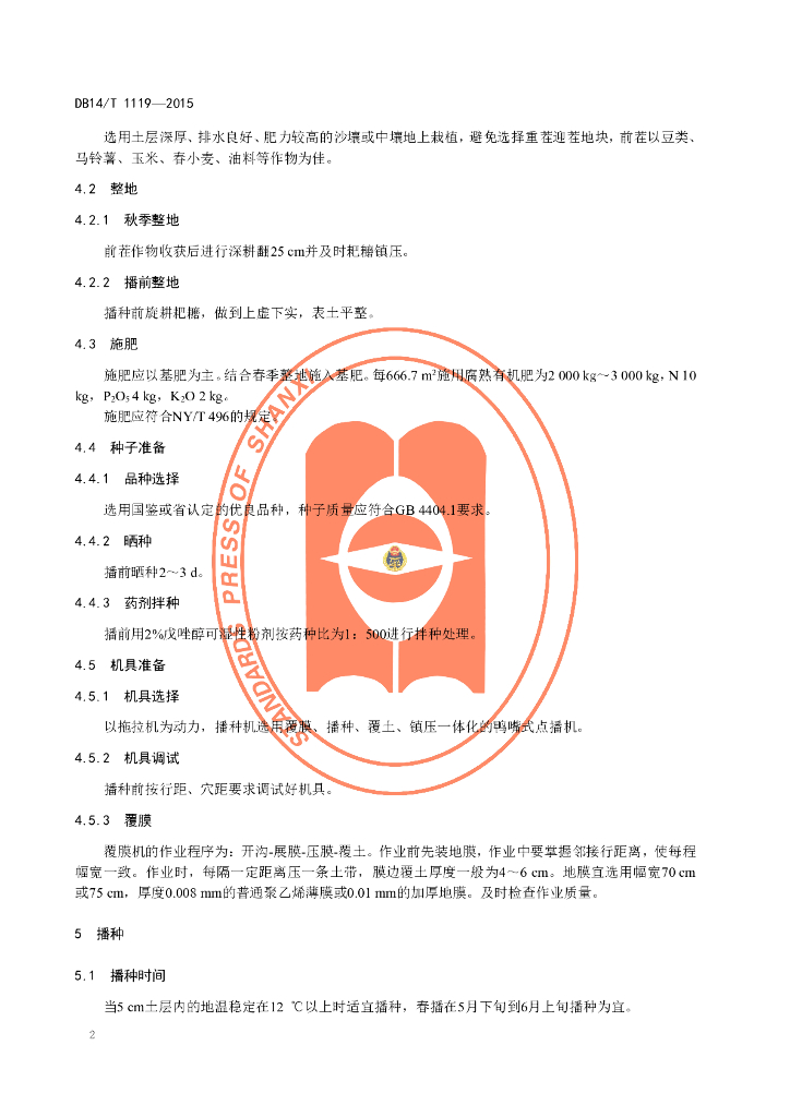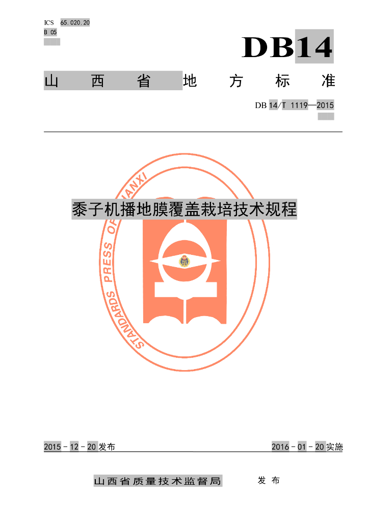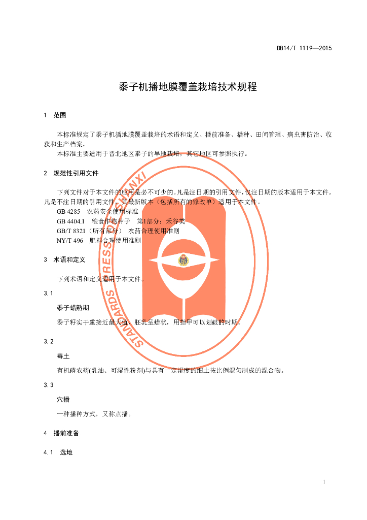 DB14/T 1119-2015 黍子机播地膜覆盖栽培技术规程