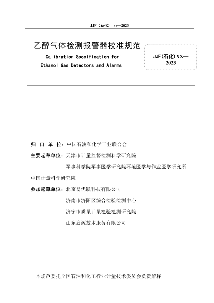 JJF(石化)081-2023 乙醇气体检测报警器校准规范(报批稿)