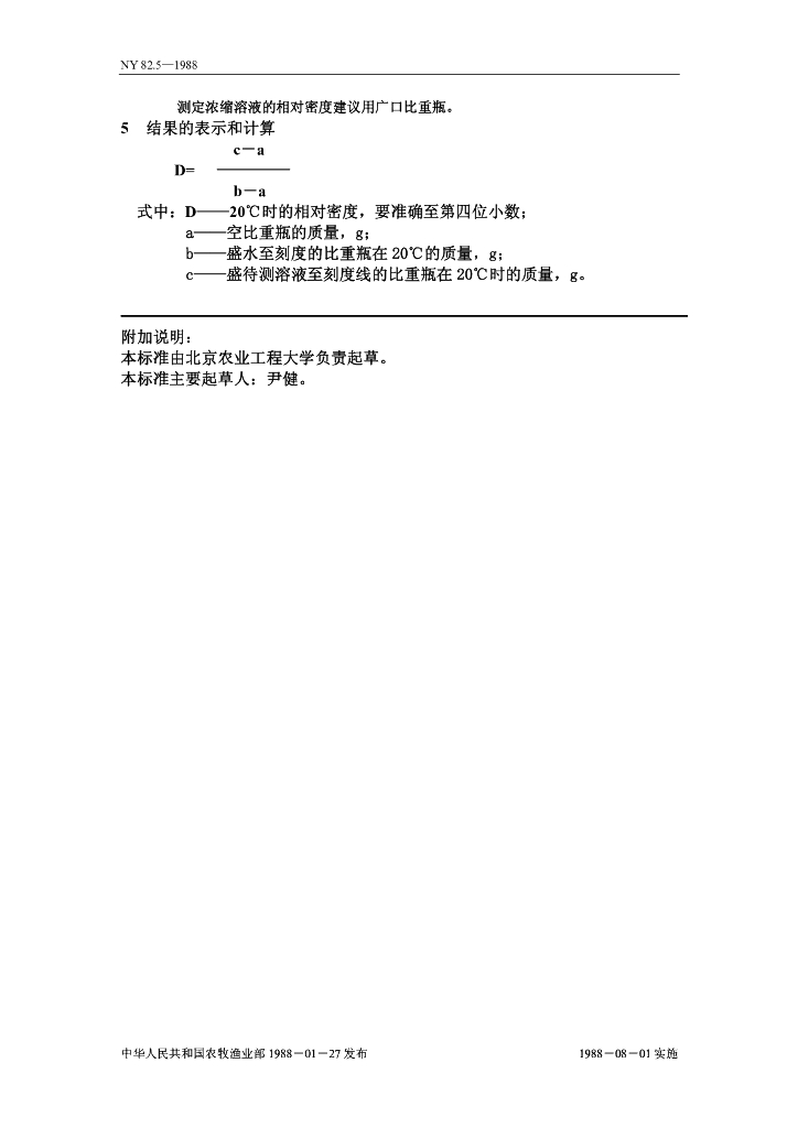 NY 82.5-1988 果汁测定方法 相对密度的测定