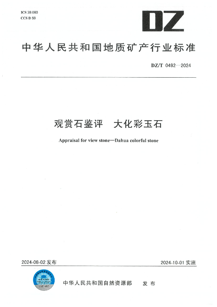 DZ/T 0492-2024 观赏石鉴评 大化彩玉石