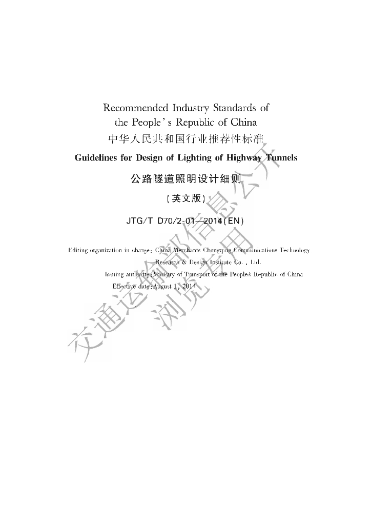 JTG/T D70/2-01-2014(EN) 公路隧道照明设计细则(英文版)