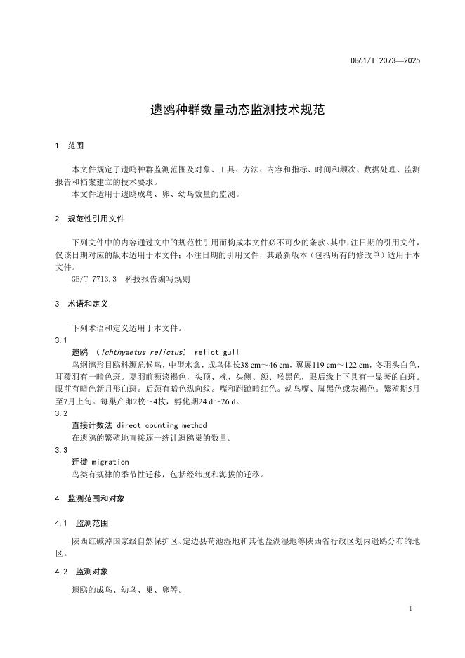 DB61/T 2073-2025 遗鸥种群数量动态监测技术规范