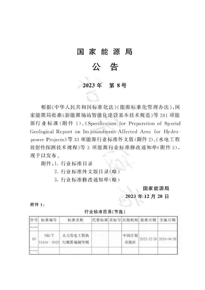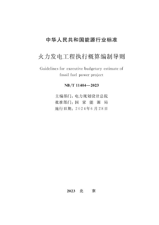 NB/T 11404-2023 火力发电工程执行概算编制导则(附条文说明)
