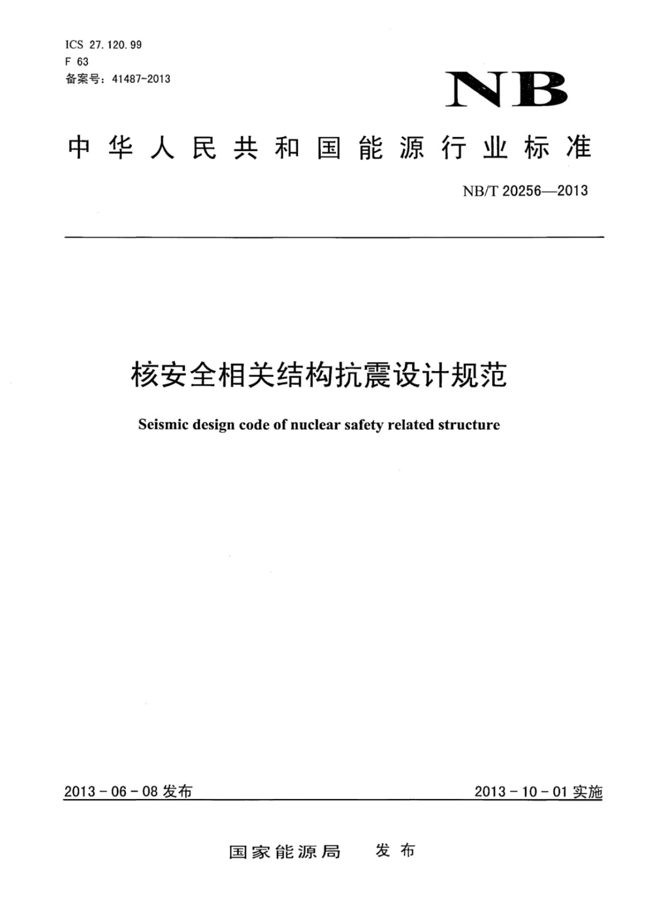 NB/Z 20256-2013 核安全相关结构抗震设计规范