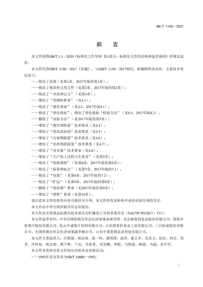 中华全国供销合作总社济南果品研究所、北京御食园食品股份有限公司、国投中鲁果汁股份有限公司、乳山中诚果汁饮料有限公司、山东稻香村食品工业有限公司、三只松鼠股份有限公司、全国供销合作总社济南果蔬华德公司、山东中果智慧农业科技有限公司