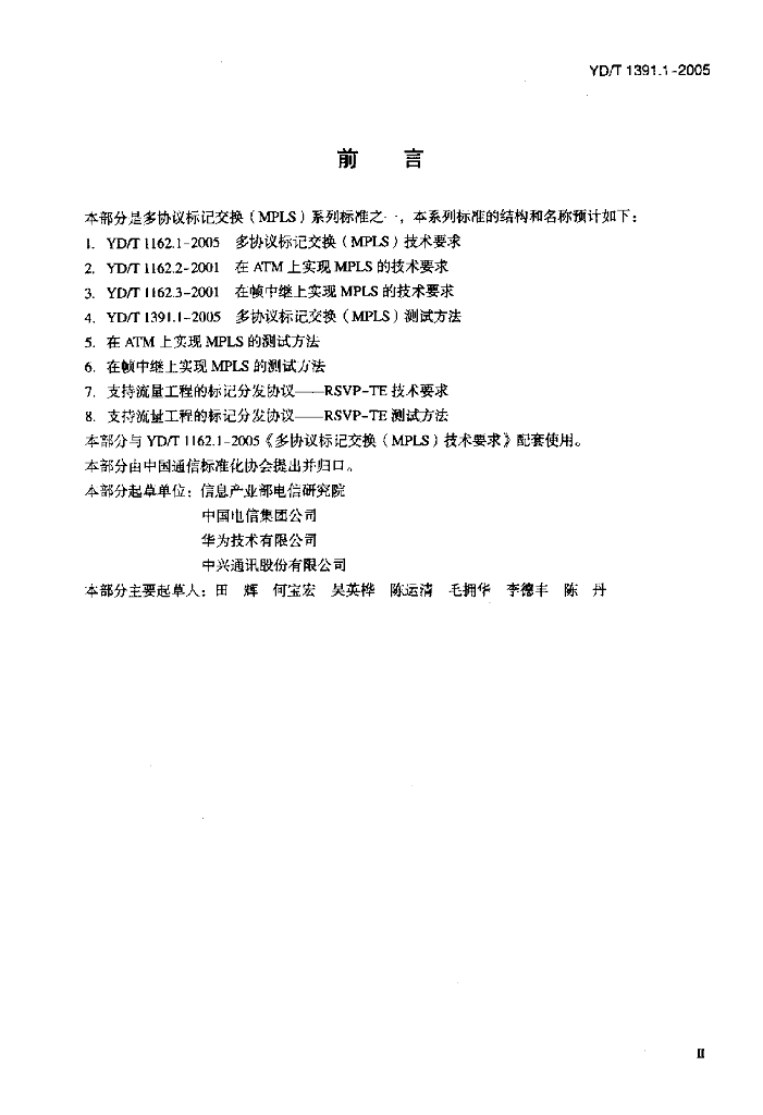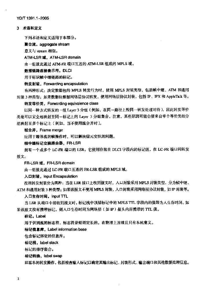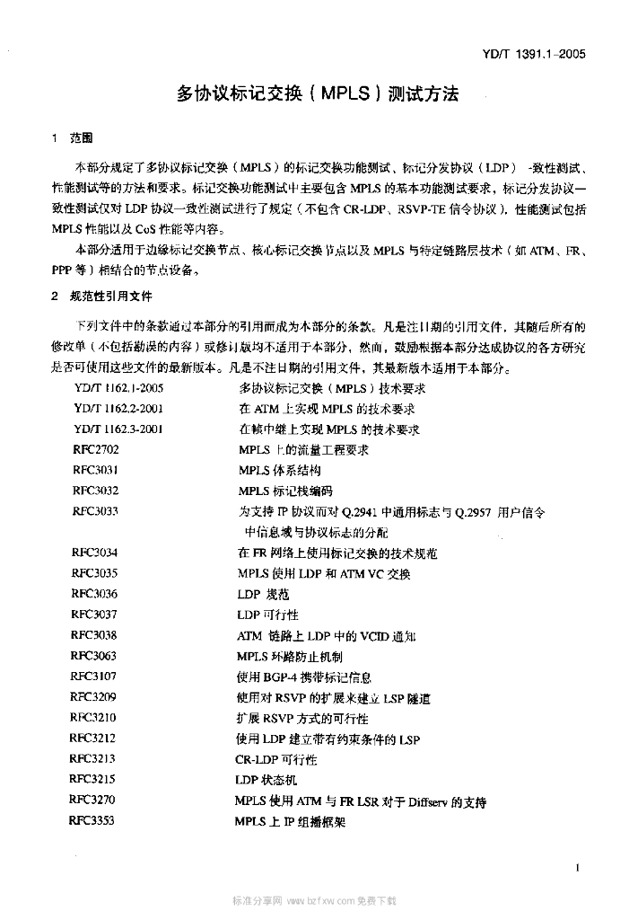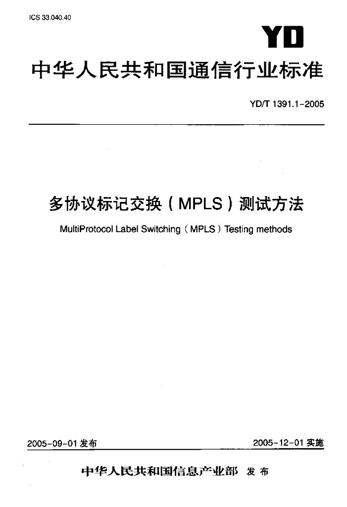YD/T 1391.1-2005 多协议标记交换(MPLS)测试方法