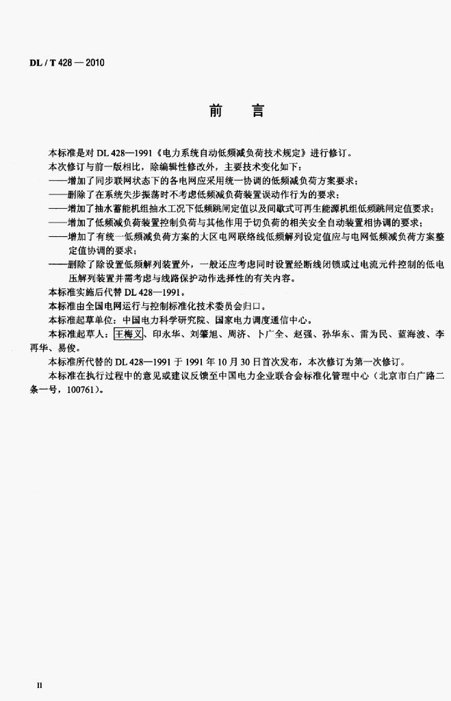 DL/T 428-2010 电力系统自动低频减负荷技术规定