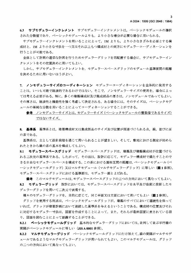 JIS A0004-1999 建筑模数的配合原则