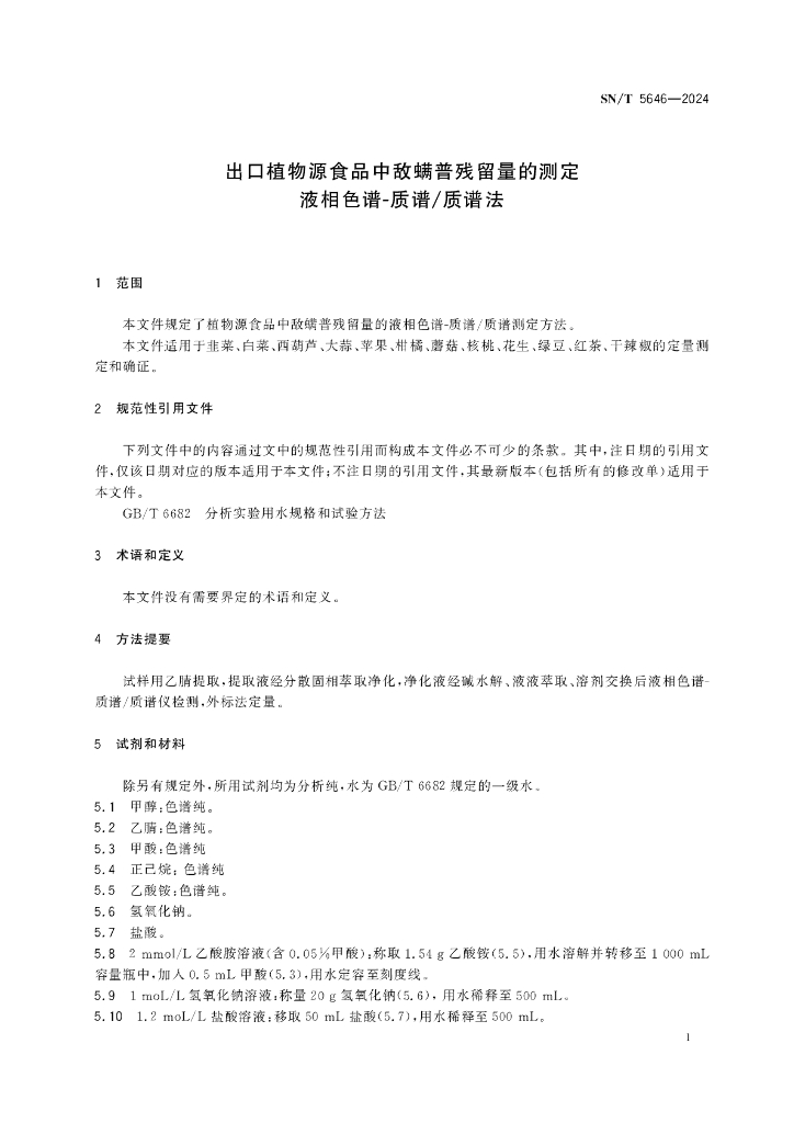 SN/T 5646-2024 出口植物源食品中敌螨普残留量的测定 液相色谱-质谱/质谱法