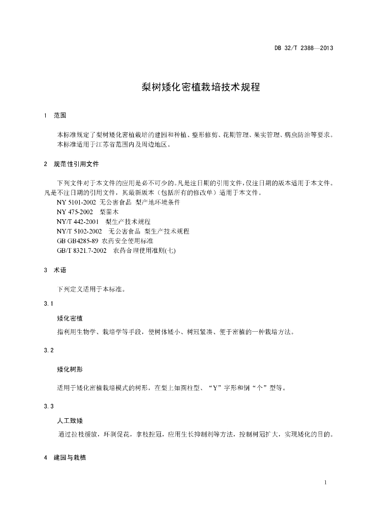 DB32/T 2388-2013 梨树矮化密植栽培技术规程