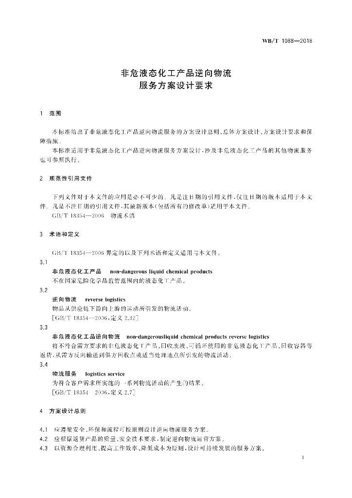 WB/T 1088-2018 非危液态化工产品逆向物流服务方案设计要求