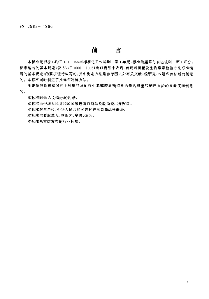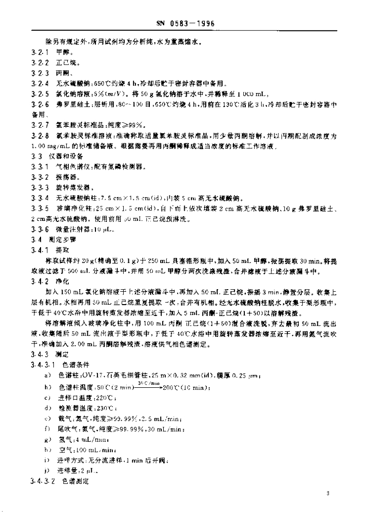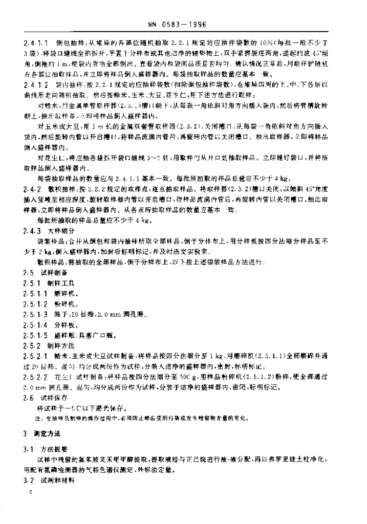 SN 0583-1996 出口粮谷及油籽中氯苯胺灵残留量检验方法
