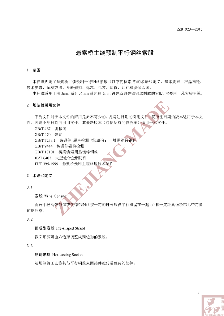 T/ZZB 028-2015 悬索桥主缆预制平行钢丝索股