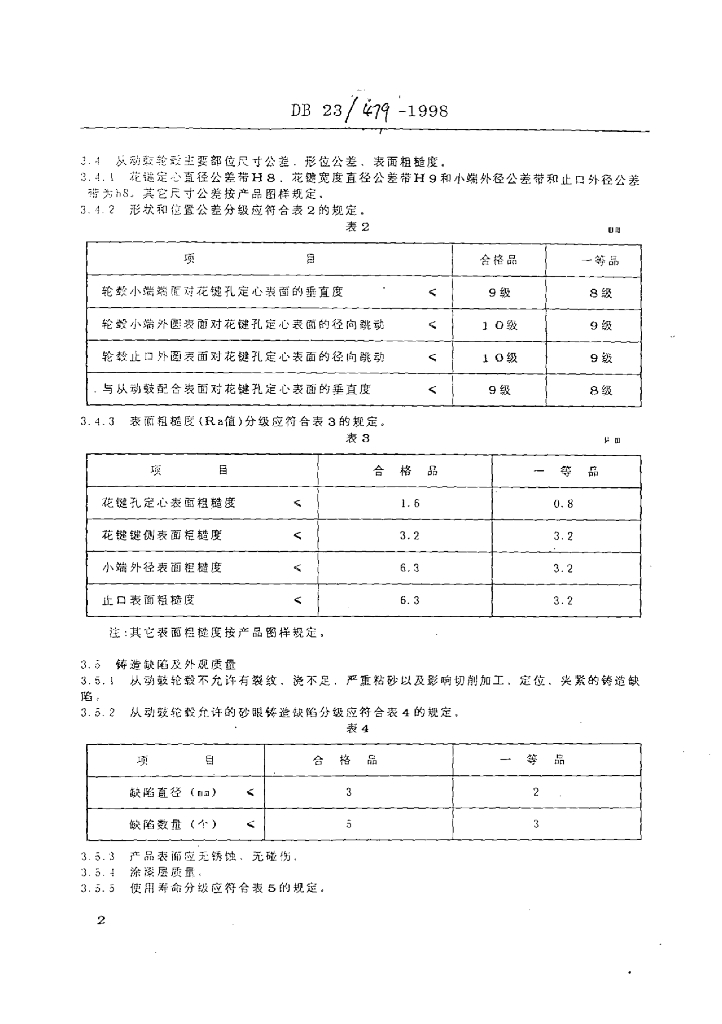 DB23/ 479-1998 东方红-75/802拖拉机转向离合器从动鼓轮毂产品质量分等