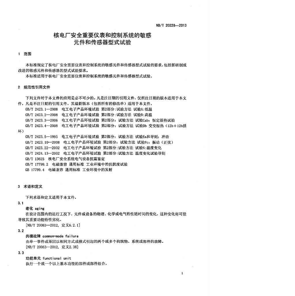 NB/T 20228-2013 核电厂安全重要仪表和控制系统的敏感元件和传感器型式试验