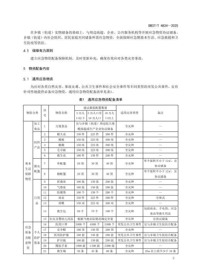 DB37/T 4824-2025 乡镇(街道)应急物资配备指南