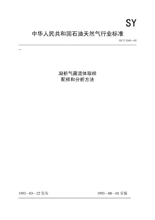 SY/T 5543-1992 凝析气藏流体取样配样和分析方法