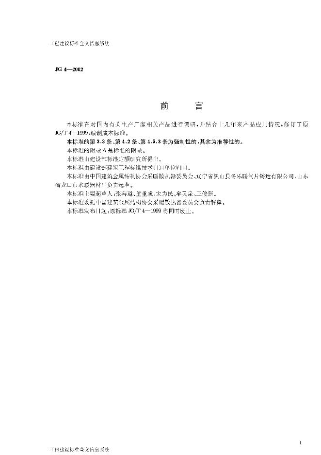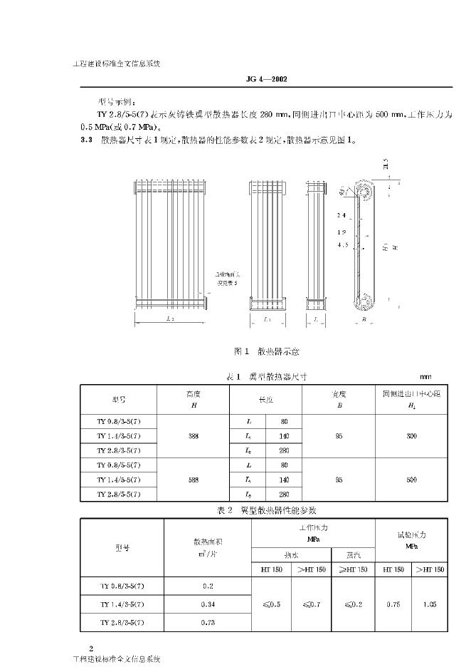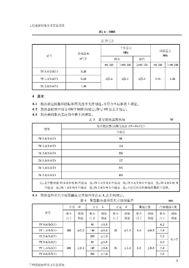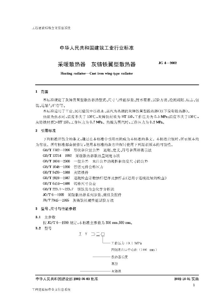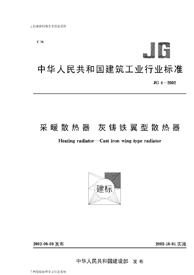 JG/T 4-2002 采暖散热器 灰铸铁翼型散热器