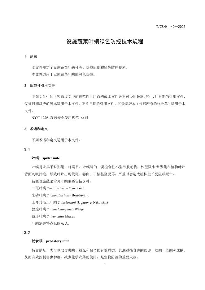 T/ZBXH 140-2025 设施蔬菜叶螨绿色防控技术规程