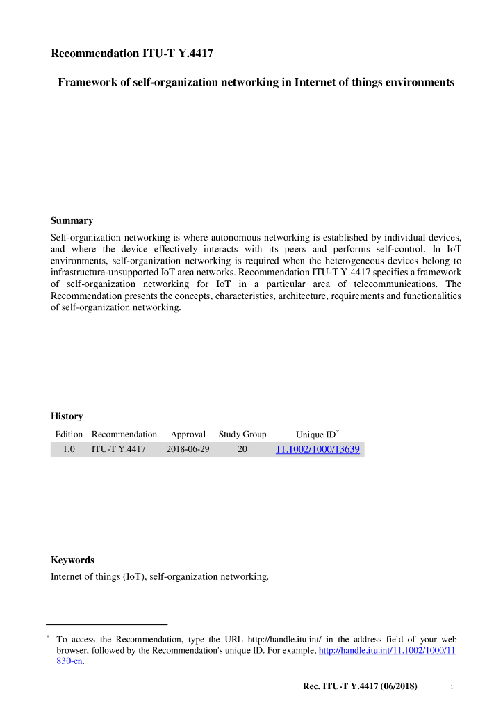 ITU-T Y.4417-2018 物联网环境中自组织网络的框架