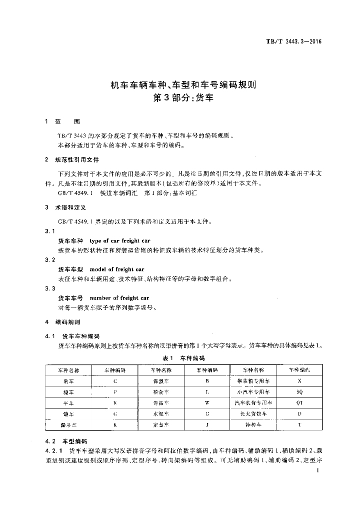 TB/T 3443.3-2016 机车车辆车种、车型和车号编码规则 第3部分:货车