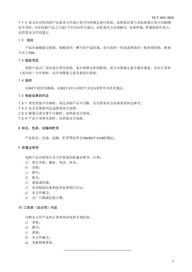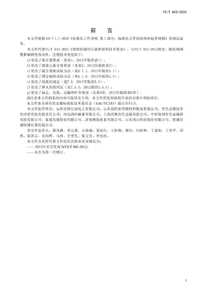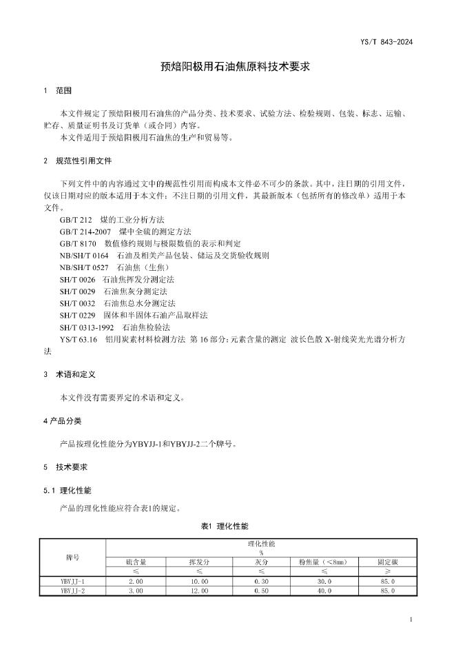 YS/T 843-2024 预焙阳极用石油焦原料技术要求