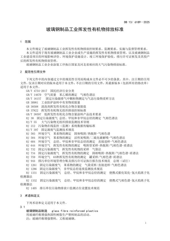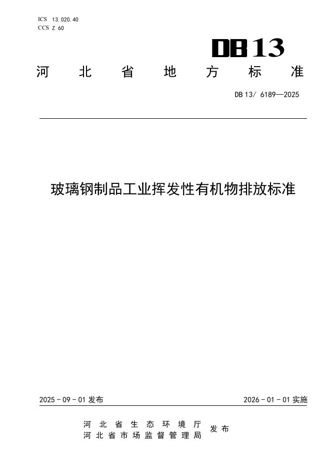 DB13/ 6189-2025 玻璃钢制品行业挥发性有机物排放标准