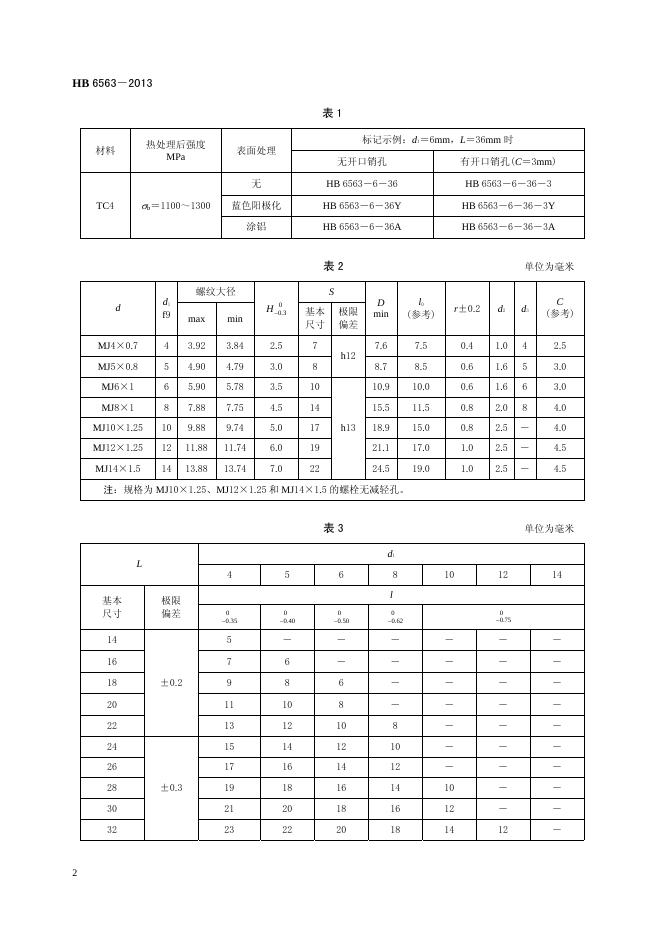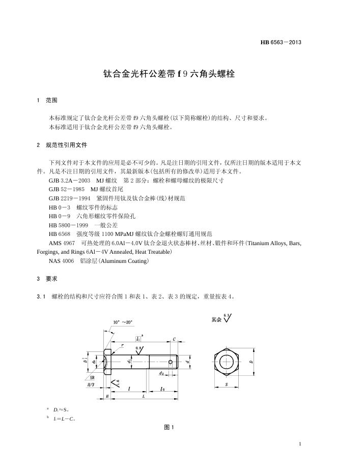 HB 6563-2013 钛合金光杆公差带F9六角头螺栓(2017)
