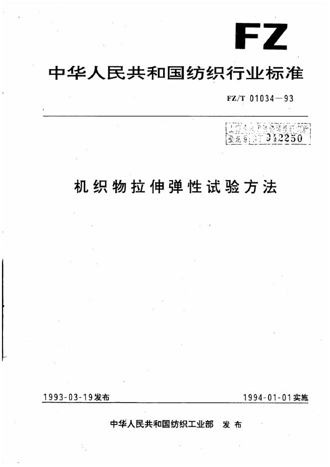 ZBW 0410-1989 弹性机织物的拉伸弹性试验方法