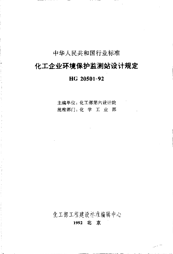 HG 20501-1992 化工企业环境保护监测站设计规定