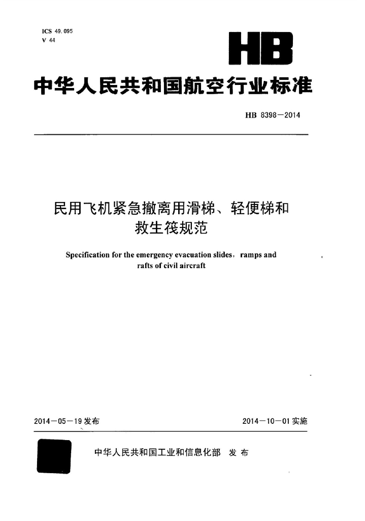 HB 8398-2014 民用飞机紧急撤离用滑梯、轻便梯和救生筏规范
