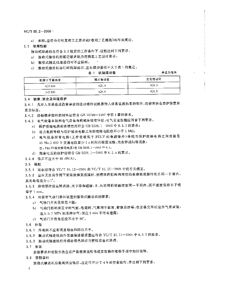 YC/T 85.2-2006 烟草机械 振动式输送机 第2部分:技术条件