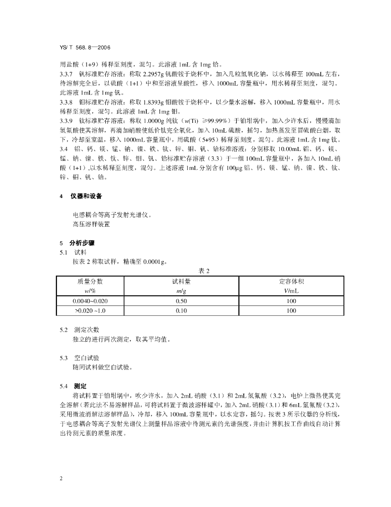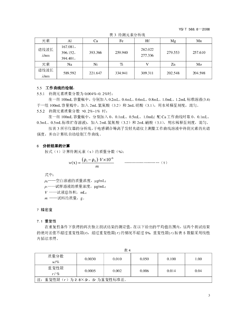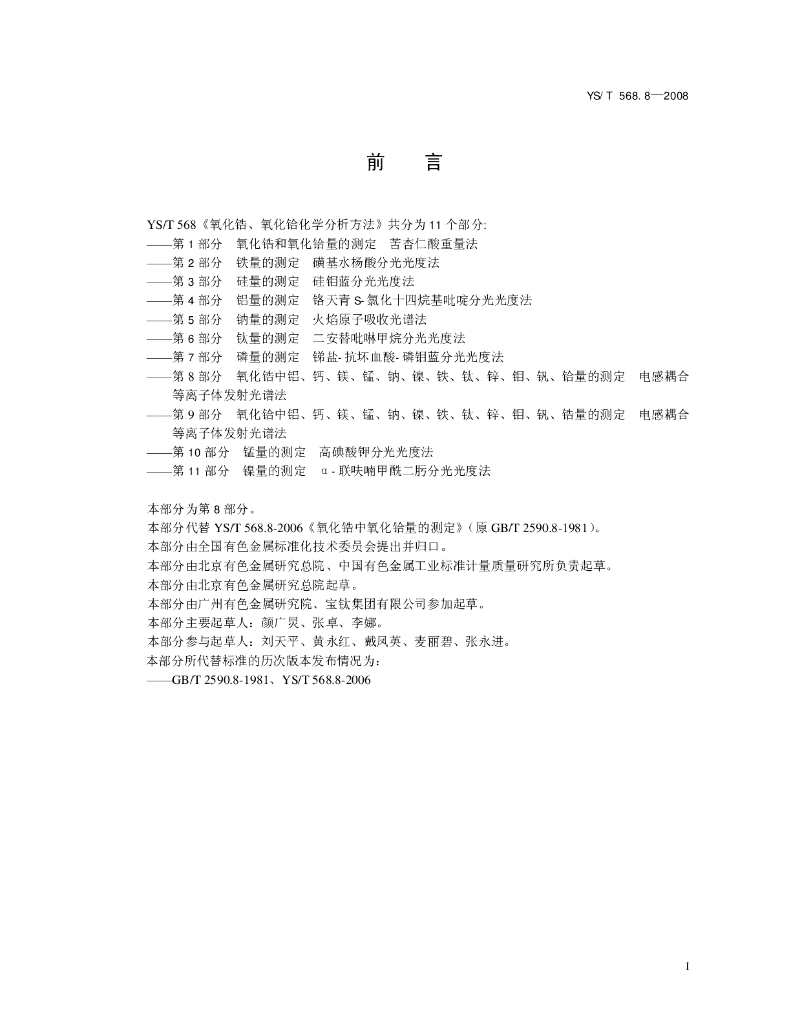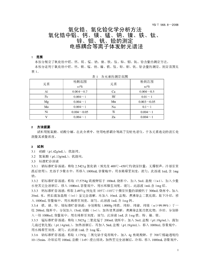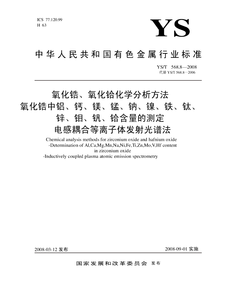 YS/T 568.8-2008 氧化锆、氧化铪化学分析方法 氧化锆中铝、钙、镁、锰、钠、镍、铁、钛、锌、钼、钒、铪含量的测定 电感耦合等离子体发射光谱法