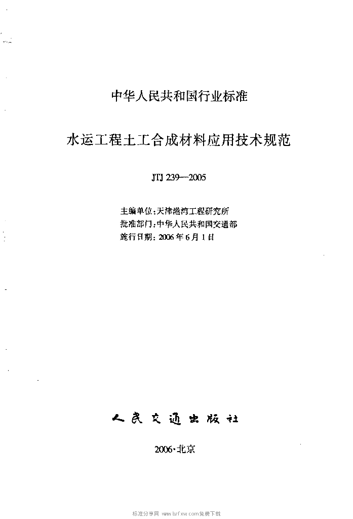JTJ 239-2005 水运工程土工合成材料应用技术规范