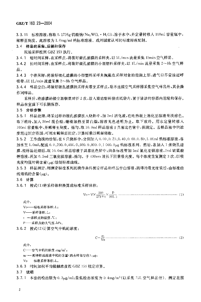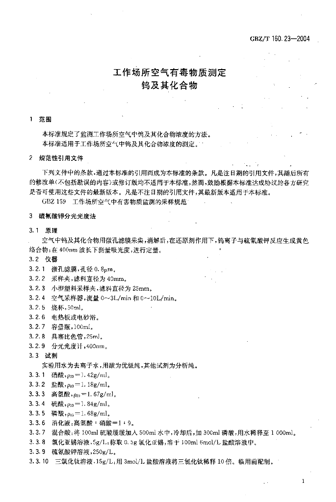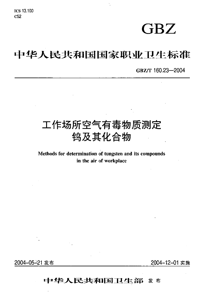 GBZ/T 160.23-2004 工作场所空气有毒物质测定 钨及其化合物