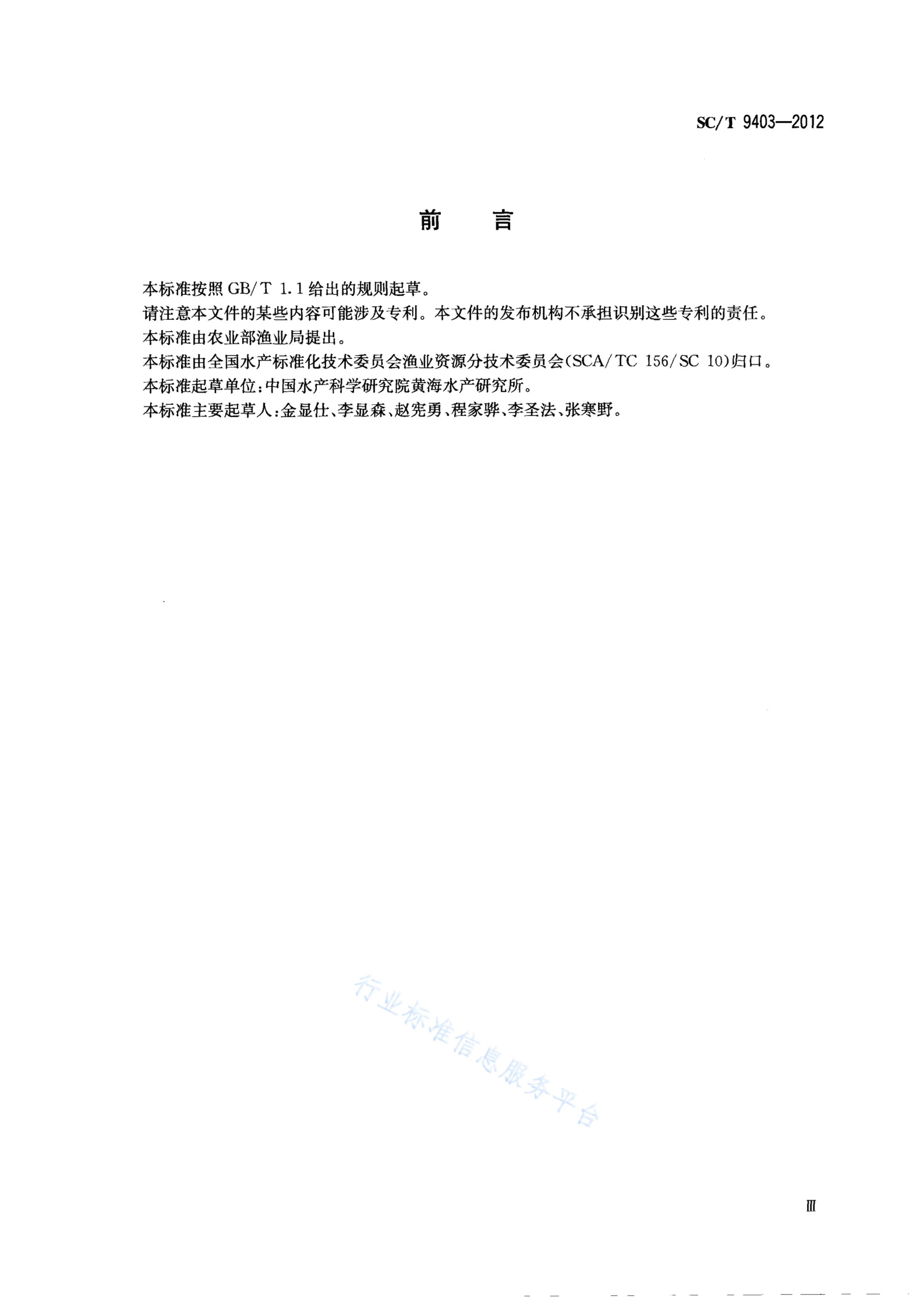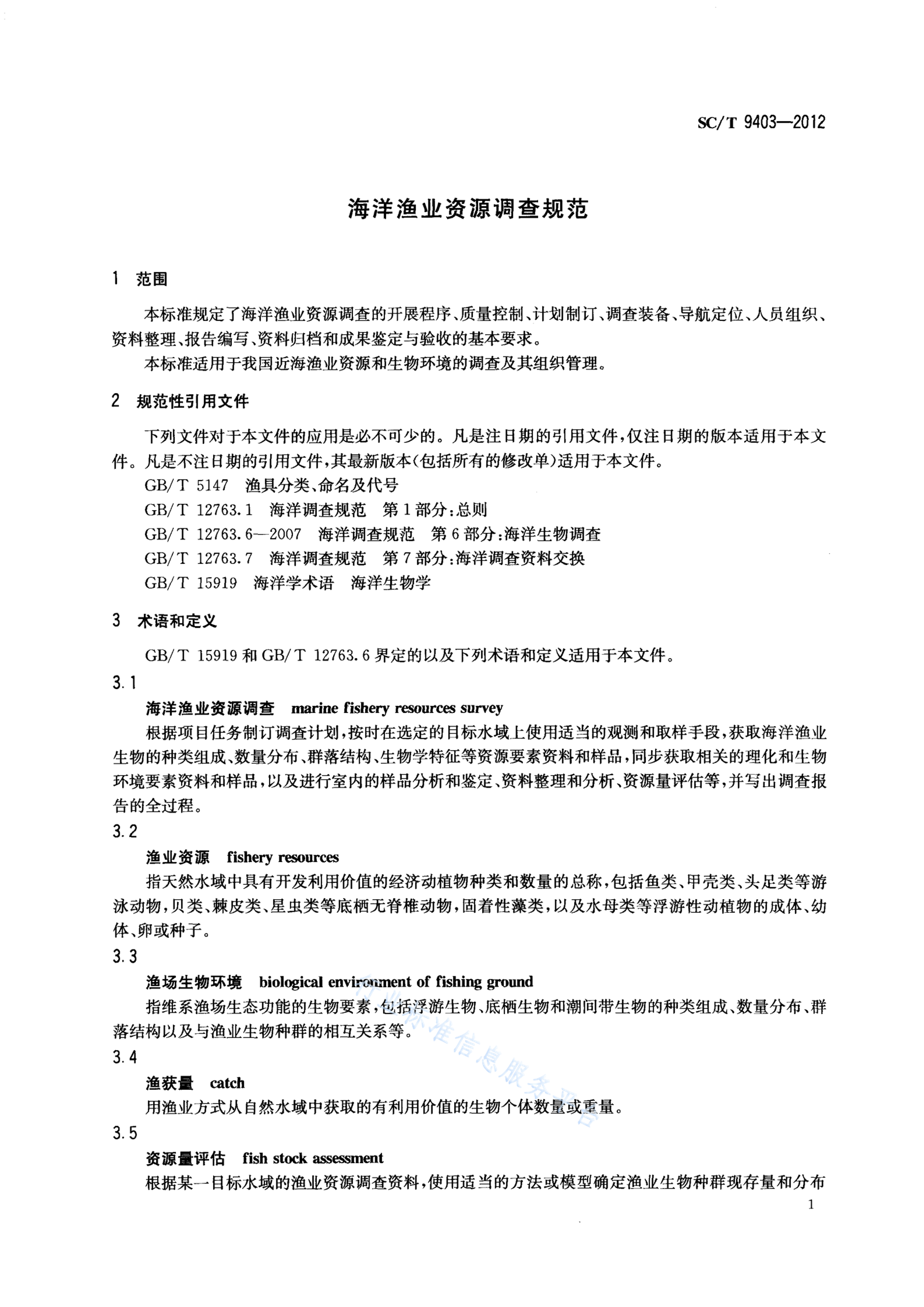 SC/T 9403-2012 海洋渔业资源调查规范