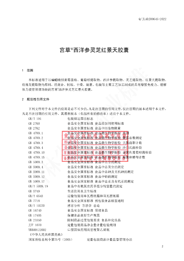 Q/JLADJ 0064S-2022 保健食品 宫草®西洋参灵芝红景天胶囊