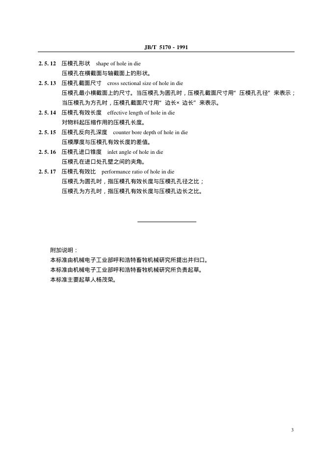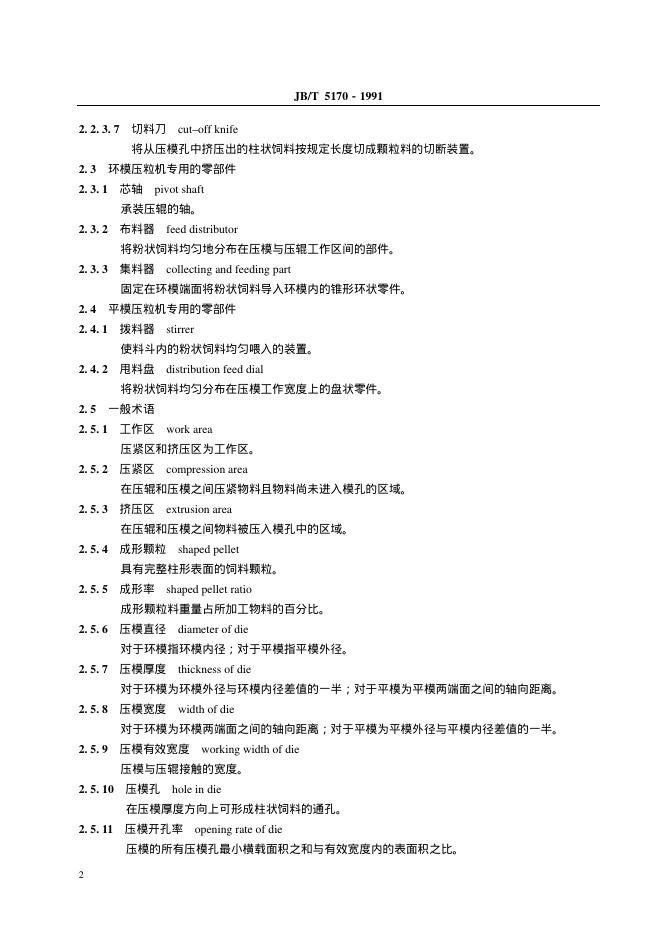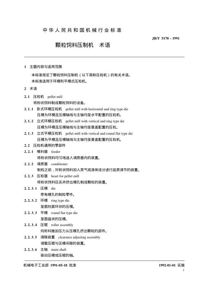 JB/T 5170-1991 颗粒饲料压制机 术语