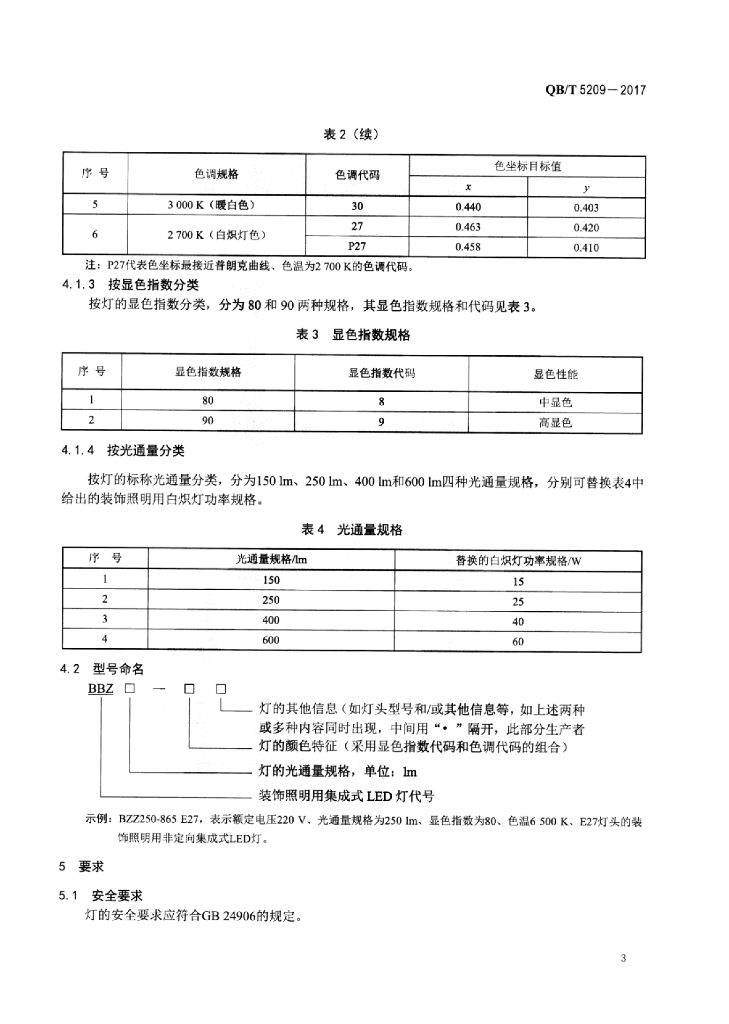QB/T 5209-2017 装饰照明用集成式LED灯性能要求