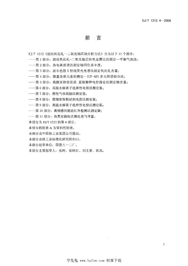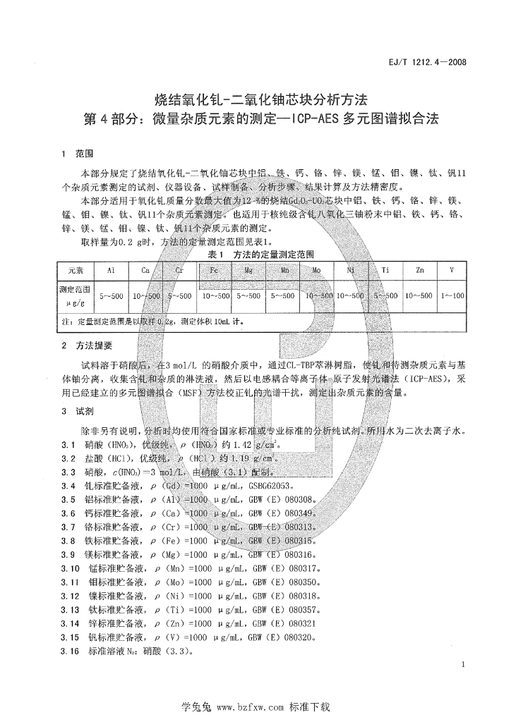 EJ/T 1212.4-2008 烧结氧化钆-二氧化铀芯块分析方法 第4部分:微量杂质元素的测定-ICP-AES多元图谱拟合法