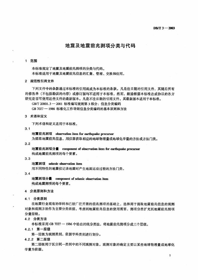 DB/T 3-2003 地震及地震前兆测项分类与代码
