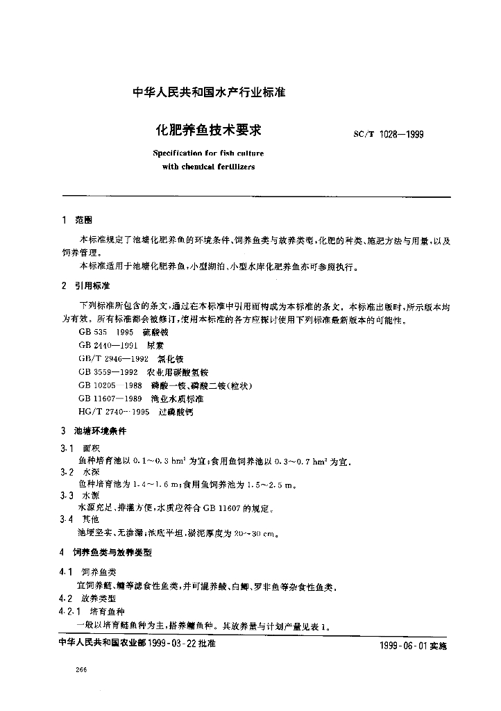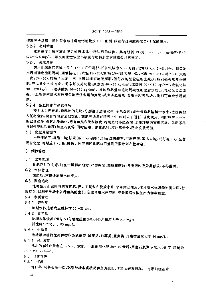 SC/T 1028-1999 化肥养鱼技术要求